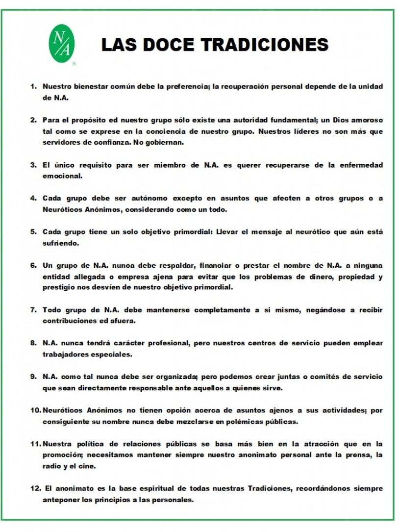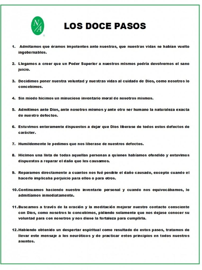 6. Tenemos un programa de recuperación constituido por 12 PASOS Y 12 TRADICIONES.