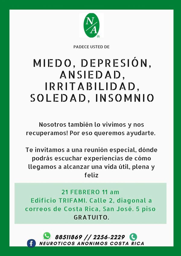 Invitamos a todas aquellas personas, que tengan interés en este programa, a que se pongan en contacto con neuróticos anónimos.